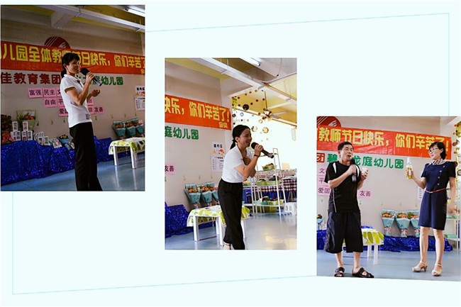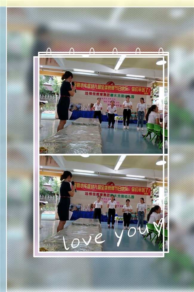 春去秋来,一年一度的教师节即将来临,为了积极响应集团提出的“有愿景、重文化、懂浪漫”教师团队建设目标,让全园教职工们度过一个开心、难忘又有意义的教师节,提升教师的职业幸福感和团队的凝聚力,我园在2017年9月8日举行碧水龙庭幼儿园教师节庆祝活动!第一篇章:有愿景,佳人同乐促情谊