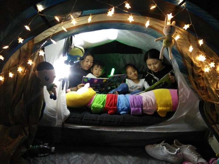 看,帐篷内一双双沉浸在故事中的小眼神,专注、认真,相信是感受到了阅读的魅力。