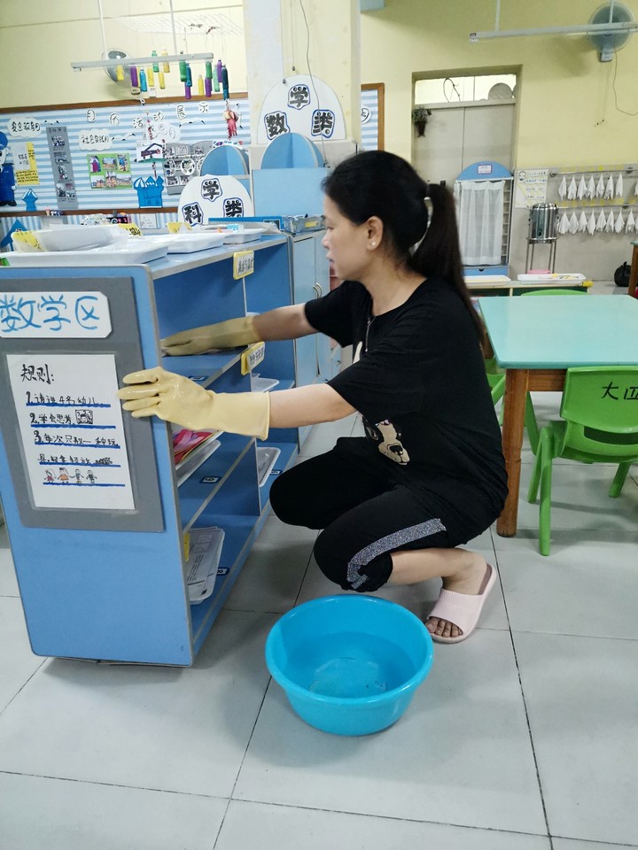 瞧,各教职工扫的扫、抹的抹、擦的擦、洗的洗、冲的冲,干劲非常足,大家对幼儿园各个角落进行卫生大清除,做到不留死角、不留盲区。