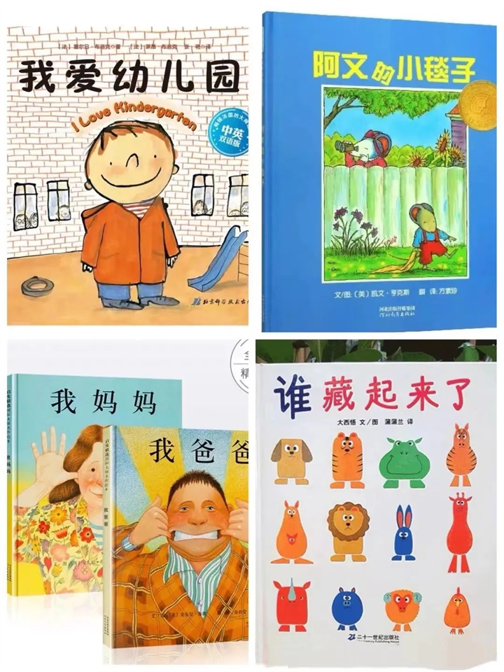《我爱幼儿园》《加油鸡蛋哥哥》《阿文的小毯子》《会响的小路》《我爸爸》《最大号的拥抱》《谁藏起来了》《小蓝和小黄》《小牙刷,刷,刷,刷》。