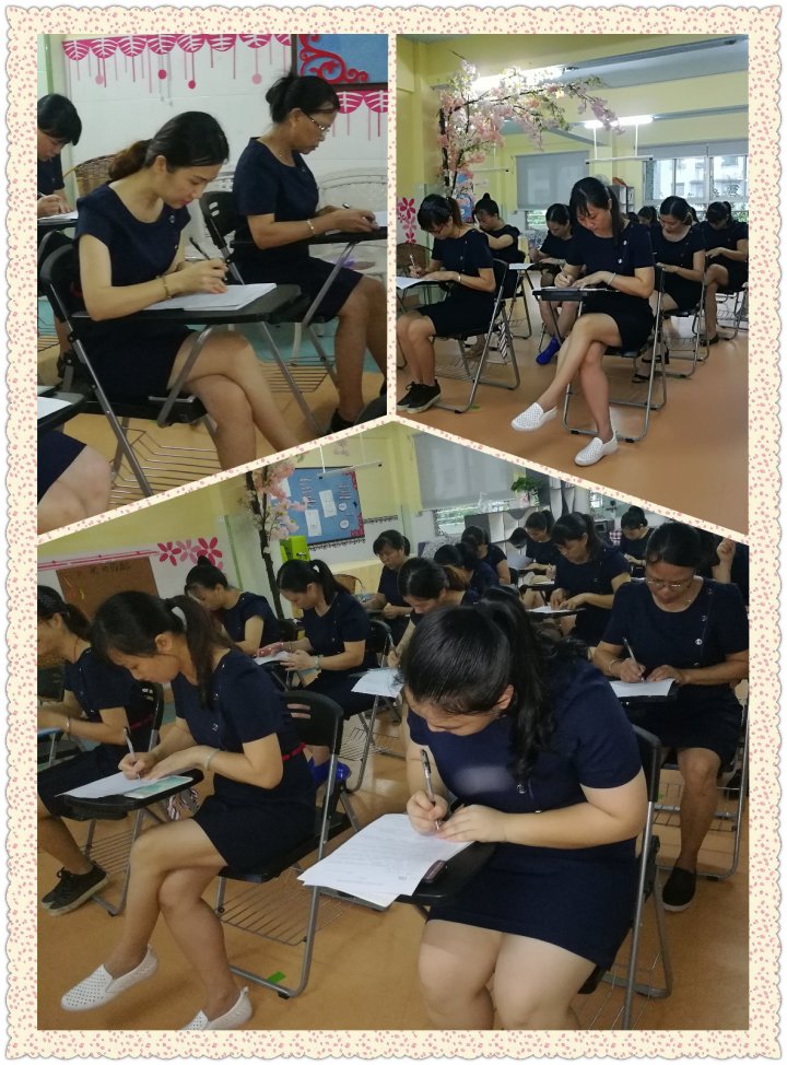笔试部分:考试试卷为AB卷闭卷考试在技能技巧考核的实操部分,我们邀请了年级家委代表及园领导作为评委。