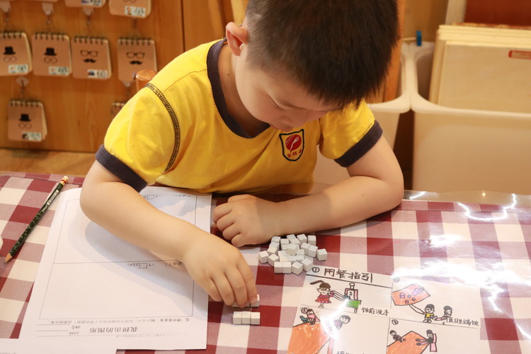 瞧,小朋友正在认真的进行操作,还会自己记录呢。