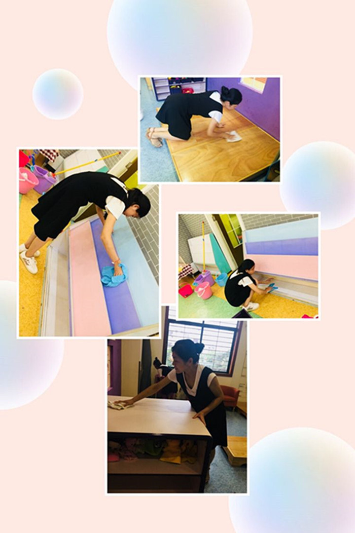 中心是孩子生活与游戏的场所,卫生消毒工作是我们卫生工作的重点。为了给宝贝们和老师营造一个整洁安全、舒适的环境,中心建立室内外环境卫生清扫和检查制度,坚持每天一小扫,每周一大扫。下面请来看看我们老师为中心必做的消毒工作吧!